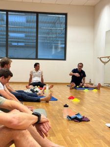 Ici, tout commence à terre. La mobilité, la posture, la conscience corporelle : autant de clés qui ouvrent les portes de la progression technique dans l’eau. C’est la conviction profonde qui réunit Cédric et Lotte – deux coaches aux expertises complémentaires, qui forment ce qu’ils appellent eux-mêmes, non sans humour, « l’association de bienfaiteurs ».